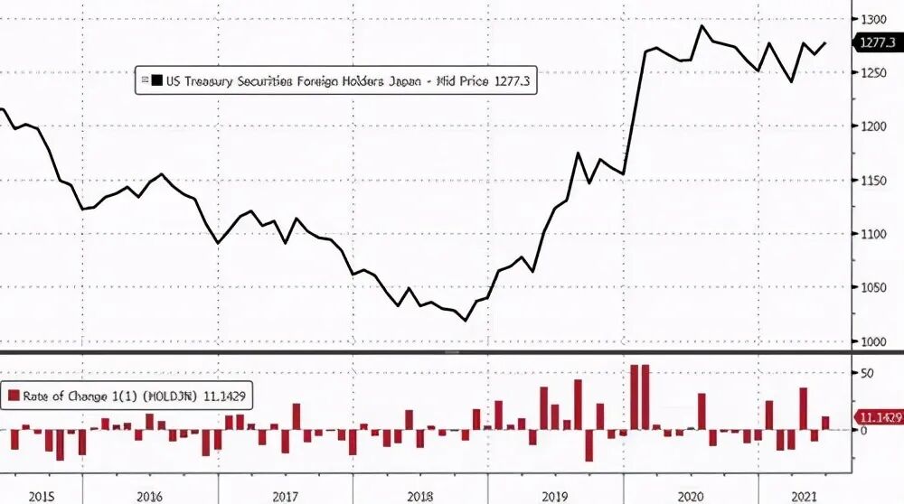 从更长的时间范围的历史数据来看,截止6月的24个月内,虽然中国的美债持仓量出现有增有减,但总体来看,在此期间已经共净持1515亿美债,且在2019年6月起日本所持美债量超过中国,成为美债第一大海外持有者,目前中国为第二大美债海外持有者,日本持有1.277万亿美债。