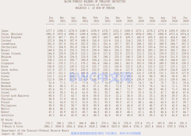 最比如,日本也在最近的11个月里已经出现八次抛售美债,而沙特在2021年上半年持续减持了占其持仓5.6%的美债,约为72亿美元,因为,美国债券的实行负收益导致美债吸引力开始下降,紧接着,美国石英网站进一步分析认为,全球央行投资者在接下去的一年内可能会毫无预警的抛售大量美债,数额可能高达7000亿,如果随着美国通胀数据持续维持高位对冲收益后隐形违约风险的增加,全球央行也存在清零美债持仓的可能性。