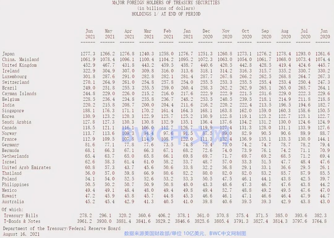 与此同时,我们注意到,据美财政部8月16日公布的最新一期国际资本流动报告TIC(美债数据延后两个月惯例),截至今年6月,中国连续四个月抛售,累计抛售423亿美债。总量降至1.062万亿美元。而自2018年以来,中国已经累计减持了高达超千亿美元的美国国债。这一减持规模已远超过德国持有的美债816亿美元的数量。