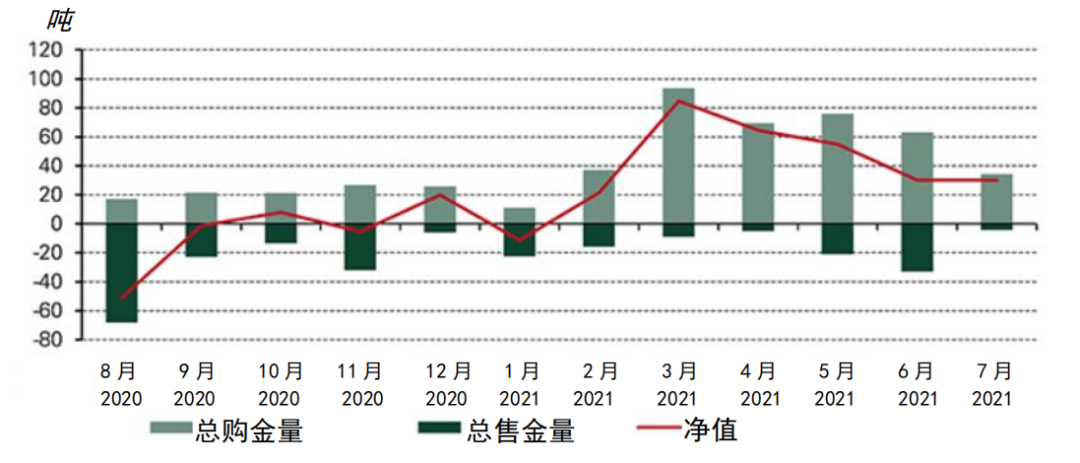 近年,伴随全球货币格局的不断变化,一些国家的央行正在将美元和黄金储备的占比进行重置。世界黄金协会9月9日公布的最新报告显示,全球央行7月净增持官方黄金储备30.1吨,几乎与6月份的净购金量持平(+0.3%);截至目前,今年全球央行对黄金储备的兴趣不减。此外,全球央行在2021年上半年共净购买了333吨黄金,比2020年同期高63%,比最近五年来平均水平高出39%,更是比2017年以来的季度水平高73%。