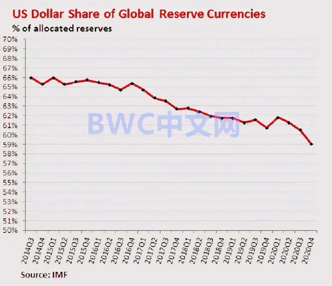 值得注意的是,美国2020-2021财年是到9月30日结束,而上述债务上限如果在此之前得不到提高,则美国联邦届时或将上演关门停摆危机。美财长耶伦近期多次警告,如果债务上限不被提高,美国将在10月份拖欠国债,耗尽资金。这将会造成金融危机。而根据时间来看,美国或无法支付账单,正在进入倒计。她同时担心,这会威胁到美元的信用和储备货币的地位。据国际货币基金组织(IMF)稍早前公布的一组数据,美元份额已经意外下降至25年来最低至59%,请注意,2000年时该比例曾高达73%。同时,自今年5月以来,随着通胀增幅达5%的水平,美元购买力也不断减弱。而就在这个时候,美联储再次发出紧缩的信号。