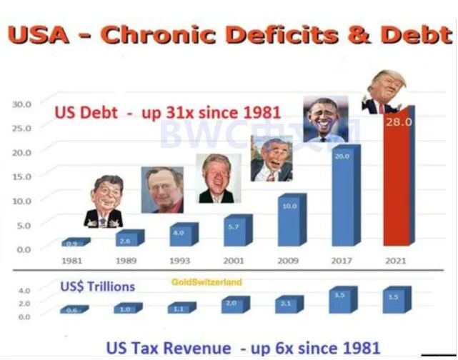截至1月22日,美国联邦债务总额已高达约28万亿美元的创纪录水平。过去四年间,增加了约8万亿美元,相当于此前8年的总和。