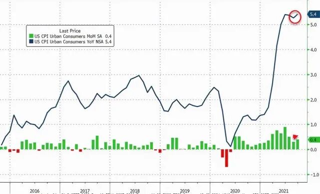 据美国劳工部10月14日公布的数据显示,美国9月CPI继连续两个月放缓增速后,再次上涨至5.4%(前两个月均为5.3%),远超出市场预期,创2020年4月以来的最大涨幅。另一项数据也显示,美国的大通胀时代将到来,美国劳工部在10月1日公布的美国8月核心PCE通胀指标上升 3.62%,这是1991年5月来最高数据,市场预期美国10月份的通胀率将达到6%以上。