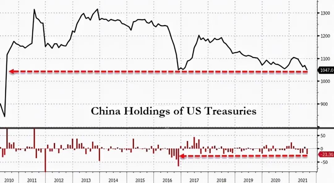 值得一提的是,事情的一个新变化是,据美国财政部在10月19日公布的最新国际资本流动报告显示(美债官方数据会有两个月的延迟惯例),中国在8月继续大幅度减持了213亿美债,使得持仓量降至1.05万亿美元,持仓规模创2010年以来最低,数据显示,中国在今年3月至8月(除7月外)的6个月中有5个月净减持了共计536亿美元的美债,中国曾在3至6月间连续四个月续抛售了323亿美债,创下自2016年以来的出现的最大连续抛售幅度。
