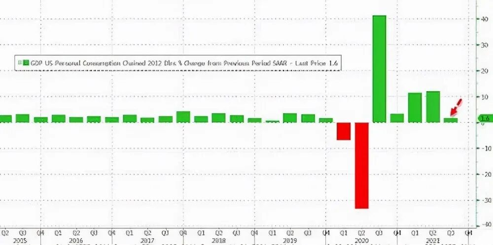 分析认为,德尔塔病毒、供应链瓶颈、不断加剧的通胀都在拖垮着美国的经济增长。而事情的另一个新进展是,美国商务部10月28日最新公布的三季度GDP环比仅增长2%,较二季度增速大幅放缓。美国经济在今年第三季度以一年多来的最慢速度增长。美国消费增速放缓至1.6%,是自2020年第二季度以来的最低增速。值得注意的是,在美国,消费约占整体经济活动的三分之二。这进一步表明,美国经济被拖垮的风险增大。