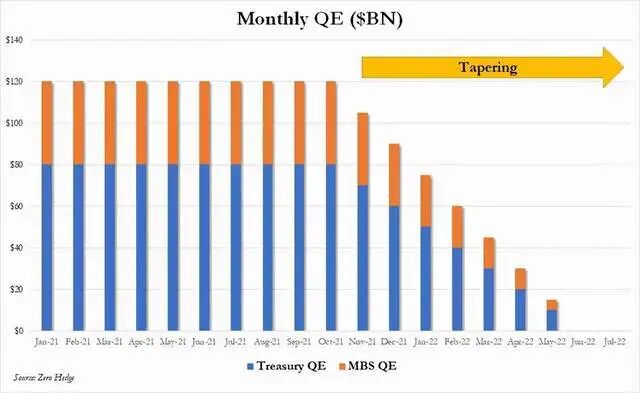 美联储于美东时间11月3日宣布自本月开始,每月减少购买100亿美元的美国国债和50亿美元的机构住房抵押贷款支持证券(MBS)。而本月将是去年6月以来首次月度购买债券低于1200亿美元。如果每个月少买150亿美元,每月合计1200亿美元的购买资产规模将在八个月内告罄,也就是说,在明年6月结束购买美债。