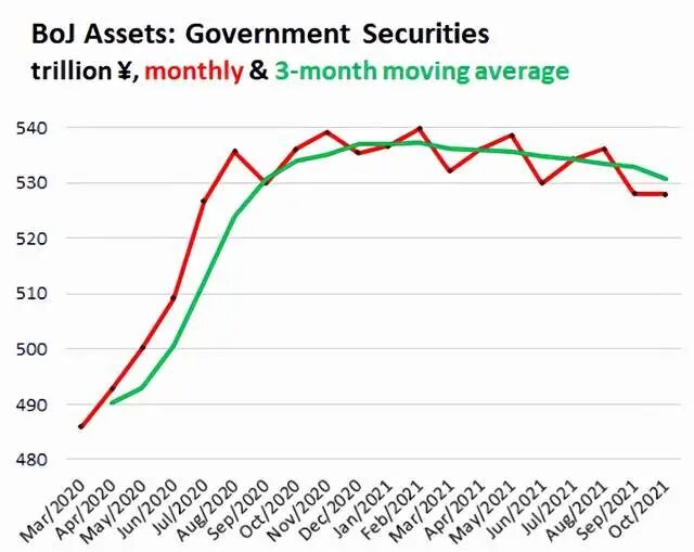同时,数据显示,日本央行已经脱落其持有的日本国债,这些日本政府证券约占日本央行总资产的 73%。10 月底,它们包括 509 万亿日元的日本政府债券 (JGB) 和18.7万亿日元的短期日本国债。自2月份以来,日本央行就开始持续减持日本国债。然而,就在这个时候,意料之外的事出现了。