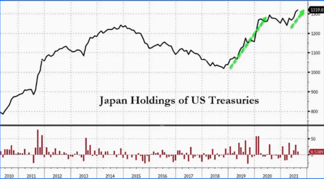更加值得注意的是,在2019年6月起日本所持美债量就超过中国,成为美债第一大海外持有者。如果单纯从美债的购买趋势上来看,在美债抛售潮正在进行的背景下,日本央行似乎对美国国债备受青睐。要知道,美联储此时也已经进入了缩减购买美债的周期。
