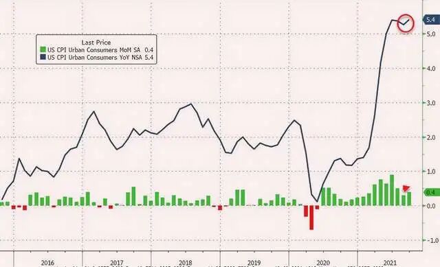 美国劳工部在一周前公布的9月核心PCE物价指数年率为3.6%,创下美国经济30年以来的最高数据,且远高于美联储设定的2%的年度通胀目标,同时,9月CPI也创下三个月以来的新高至5.4%(前两个月均为5.3%),且远超预期,创下去年4月以来的最大涨幅。