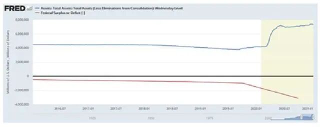 而目前,美联储正以每月至少购买1200亿公债和抵押支持证券在快速扩张其资产负债表,在过去的39周内,美国已向市场通过美联储资产负债表扩张,购买各期限债券及各个经济刺激方案,已经累计放水印钞超19万亿美元的货币流动性,显然,美联储在其货币政策工具接近倾家荡产。换言之,美国经济在2021年少则或5.345万亿美元,多则可能8万亿美元,甚至更高的刺激资金从何而来?已成为一个疑问。