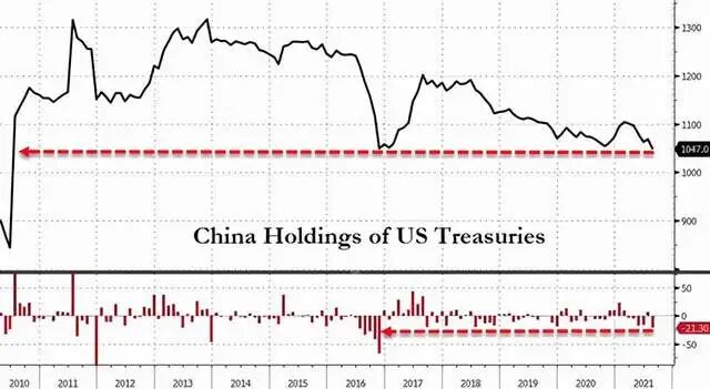 美财政部的报告数据显示,8月全球央行第4个月净抛售了高达340亿美债,其中,中国在8月大幅减持了213亿美债,使得持仓量降至1.05万亿美元,创下2010年以来最低持仓规模。数据显示,中国在今年3月至8月(除7月外)的6个月中有5个月净减持了共计536亿美元的美债。
