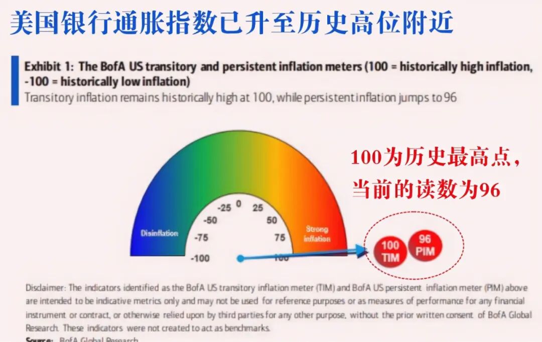 美国银行发表的报告中指出,在2021年4月至10月,包括房租在内的真实通胀年率应为7.2%,且通胀的最高水平还远没有来到,正如下图数据所示,美银通胀预期指数已经升到历史高点。