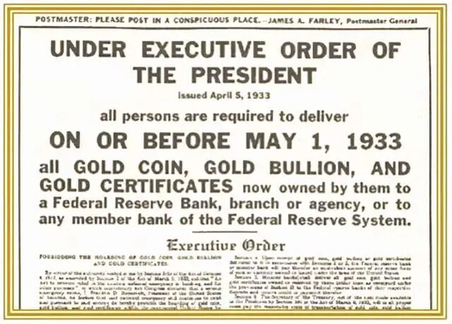 正如下面这份文件所示,在1933年,出于种种原因,时任美国总统罗斯福通过臭名昭著的行政命令没收了美国民众的黄金,他们被要求上交黄金,作为回报,将获得每盎司20.67美元的银行存款作为交换。虽然,Crispin Odey也坦言美国只有在感到有必要为全球商贸环境建立一个稳定的结算单位时才会这样做,但事情并没有到此结束,更让华尔街意外的事发生了。