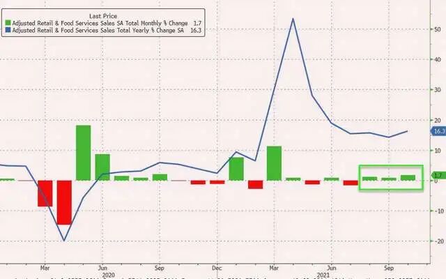 美国在11月17日最新公布的10月份零售数据创7个月来最大增幅,超过预期,强劲的零售数据推动美债5年期盈亏平衡通胀率升至历史新高,对此,美联储资深理事布拉德表示,美联储缩减购债规模应增加至每月300亿美元,并为2022年5月加息打开大门。