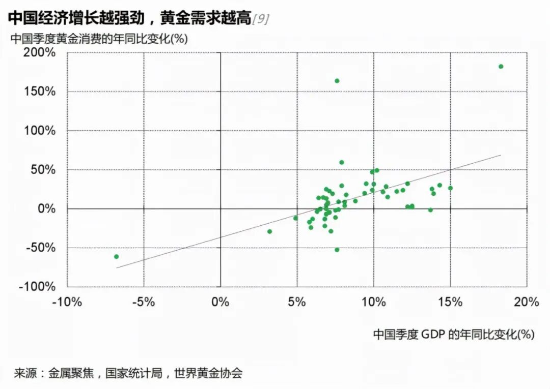 中国的黄金消费和国家的经济实力之间存在着正向关系