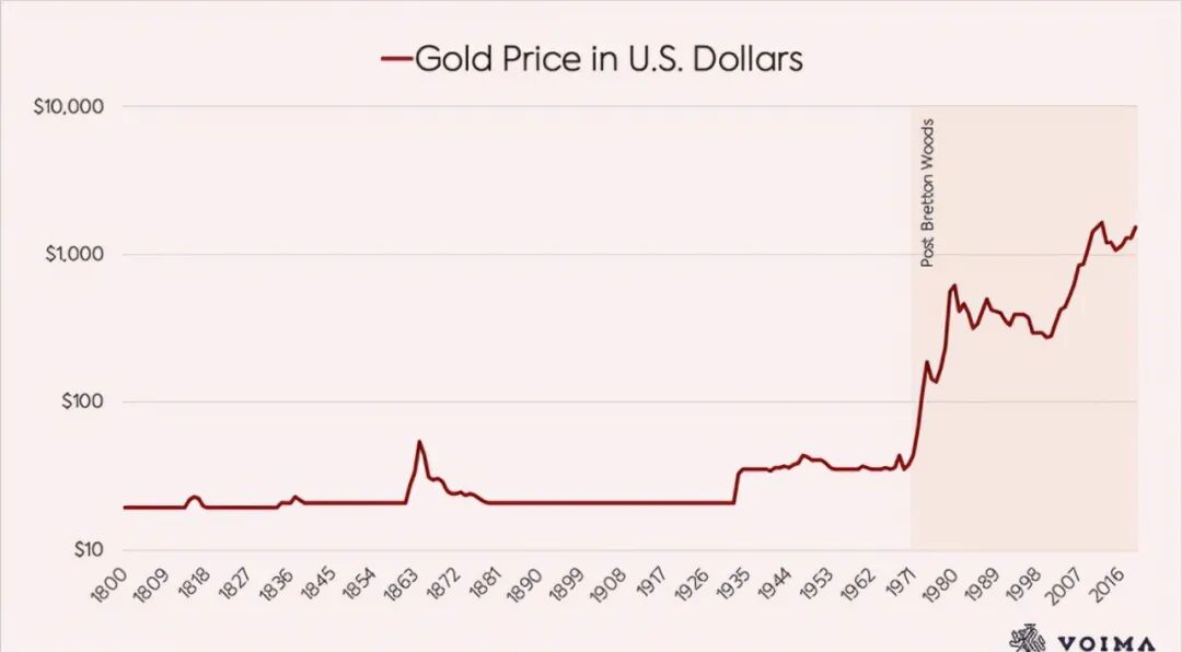 以上这些说明,黄金依然在货币和金融系统中发挥着信任锚的作用,正如下图数据所示,1971年8月,以美国为主导的全球货币金融体系遗弃金本位后,黄金价格为每盎司41美元,而到2021年11月,达到每盎司1860美元左右,涨幅超过4,600%,这就是黄金的力量,因为它保留了个人财富和多个世纪的财富。