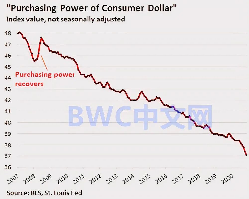 众议员穆尼在信中写道:鉴于美国联邦支出的巨大债务及这可能引发通胀失控的噩梦,确保黄金储备既安全又被充分核算的可能性从未如此重要,因为,联邦当局缺乏透明度,削弱了公众的信心。自1971年以来,美元对大多数主要货币已经下跌了50-70%,对黄金价格更是下跌97%,不断暴涨的美国债务不利于美元的价值,并会对通胀产生额外的影响,正如由IMF提供的数据显示,美元的购买力自1982年以来以最快的速度下滑。