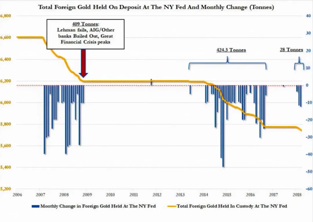 美联储似乎在一周前公布的一份最新报告对此作了回应,报告显示,目前,美联储替全球央行保管的黄金数量已经跌至5738.15吨的新低,而两个月前这一数字为5750吨,这也意味着有约12吨黄金从金库中消失,或已被国外央行撤出美国。