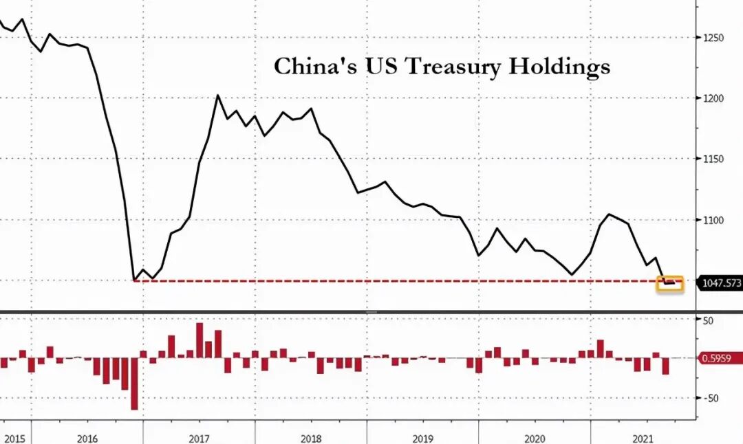 美财政部的报告还显示,虽然,9月,中国小幅增持了6亿美元的美债(约合计38亿人民币)至1.05万亿美元,打破了8月大幅度减持213亿美元的状态,但美债仓位仍维持在2016年12月以来的最低值,数据显示,在2021年3月至9月(除7月和9月外)的七个月内,中国共有5个月在净减持高达530亿美元,约合计3386亿人民币的美债(具体数据趋势请参考图表)。