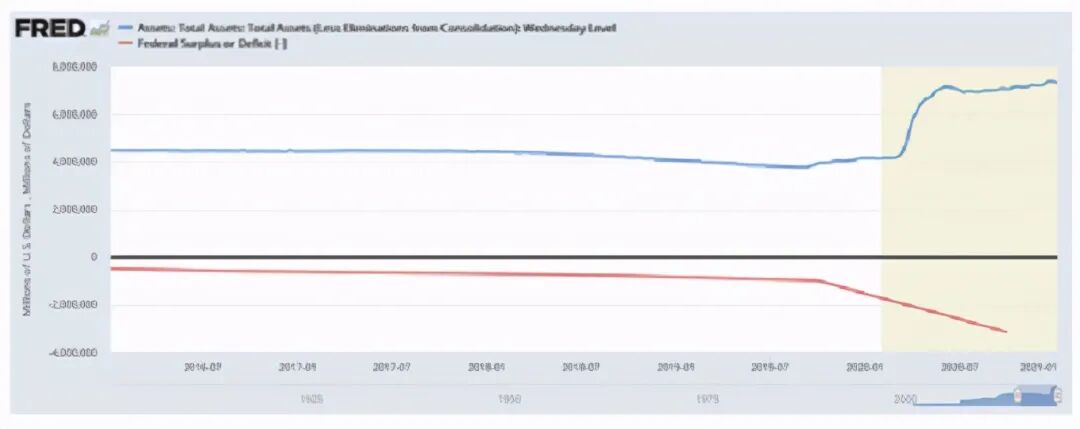 美联储资产负债表的急剧上升和联邦赤字的相应增长