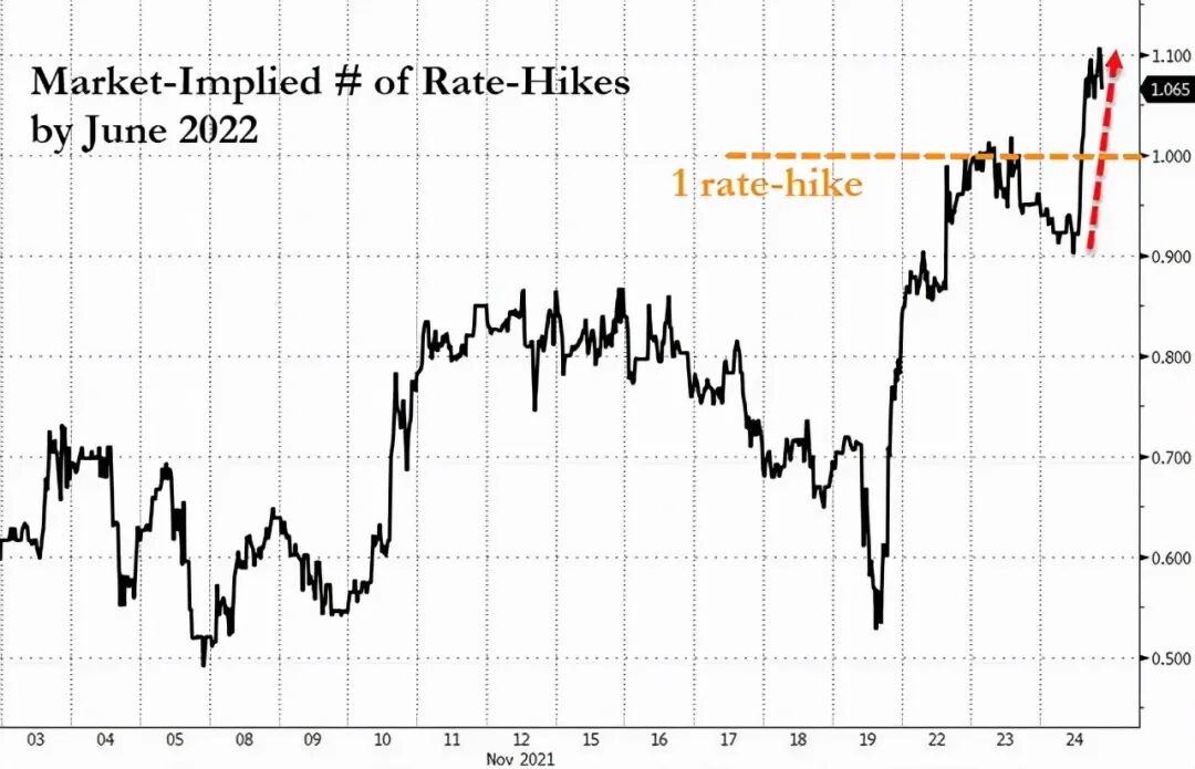 美国商务部在11月25日公布的10月核心PCE数据大涨5%,接近30年来的高点,超出市场预期,而这个被美联储最偏爱的通胀指标继续高于美联储设置目标的两倍以上,这使得投资者目前押注美联储2022年将不得不被动加息三次。
