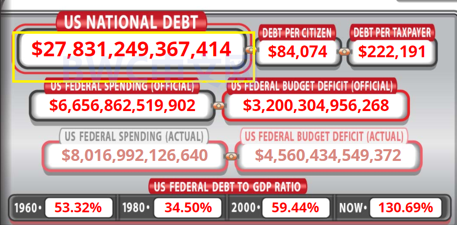 然而,美国债务也进入一个新高度。事情的一个新进展是,截至1月25日,美国联邦债务总额已高达约28万亿美元的创纪录水平。过去四年间,增加了约8万亿美元,相当于此前8年的总和。