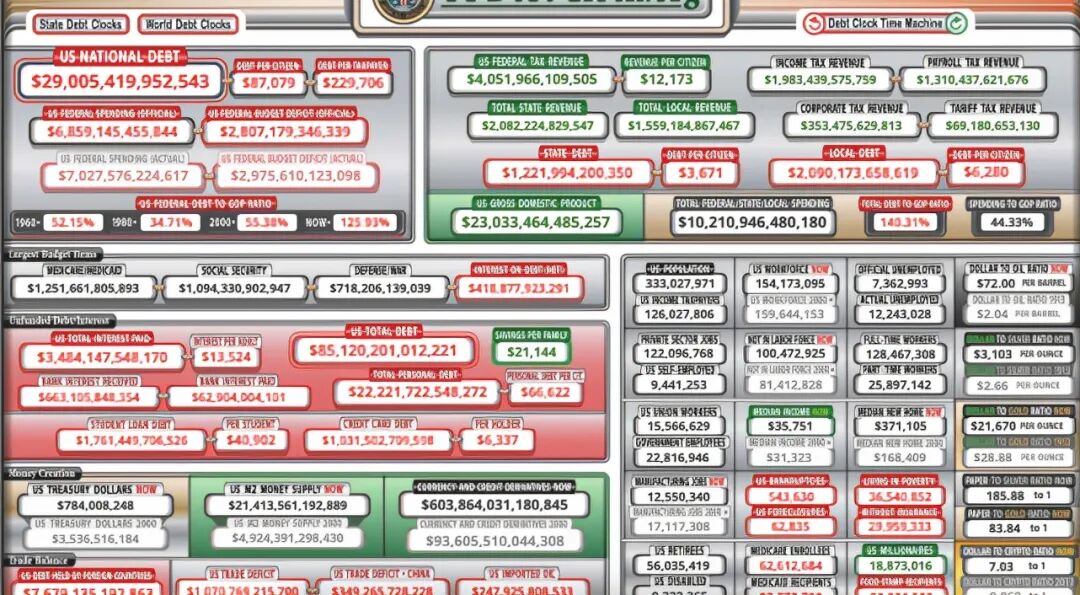 目前,在下面这个像飞机仪表盘样的美国联邦国债实时钟上显示的联邦债务赤字总额已经连跳三级突破29万亿美元大关,且数据还在不断增长中,简单计算表明,美国人均欠债约9万美元,对此,美国财长在12月1日就债务突破上限以及美国当局的超支行为提出警告,担心这可能进一步加剧通胀,使得10年期美债收益率可能轻松达到3.5%,被市场长久地大幅抛售。