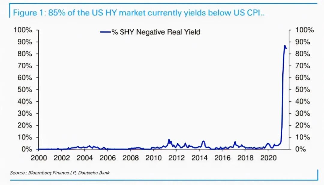 美财长在12月2日参加听证会时表示,我们处于低利率环境,衡量财政可持续性的一个更好的方法是,看看债务的实际净利息成本,过去几年,美国国债相对于发行的规模增量来说实际偿债成本一直为负,并预计利率成本将维持在低位。德意志银行研究员Jim Reid在11月28日发布的报告中表示,目前,美国债券市场中超过85%的各期限美债收益率低于当前的通胀率,实际收益率为负值。