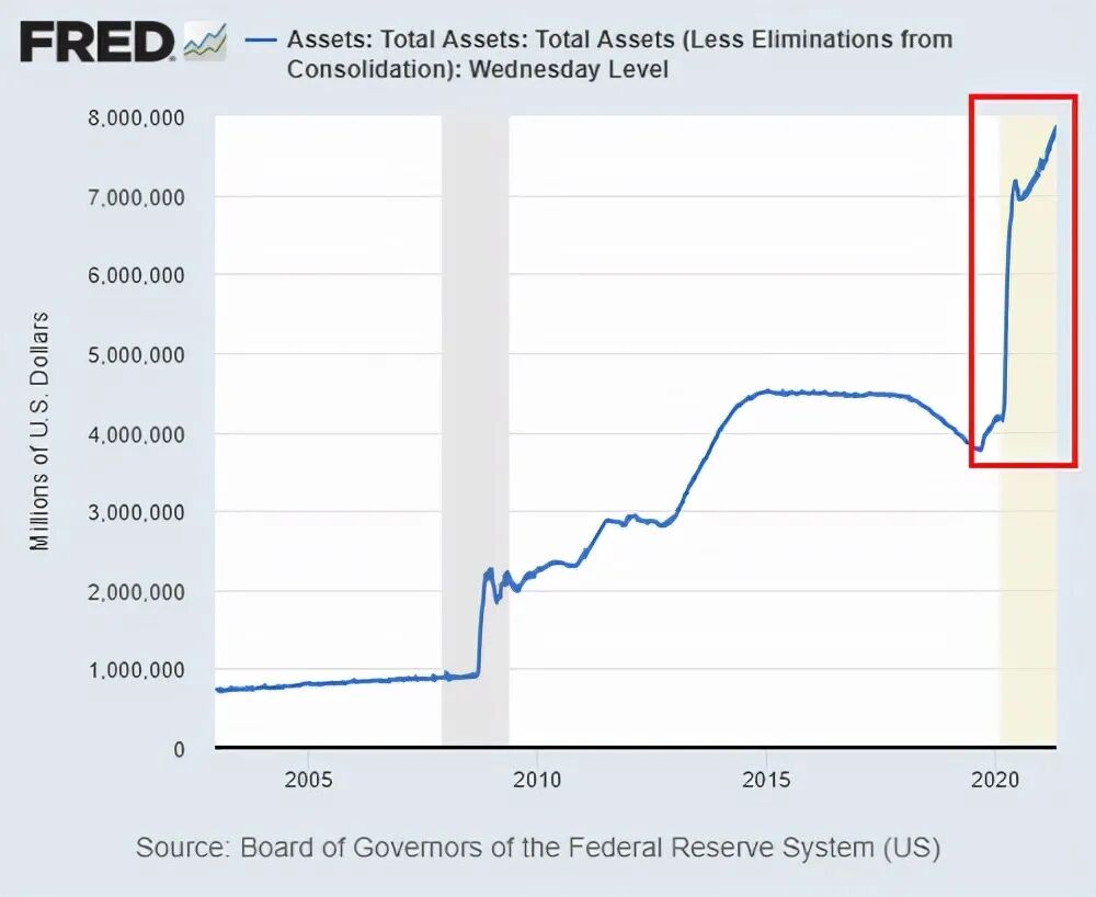 美联储资产负债表增长几乎是垂直排列的