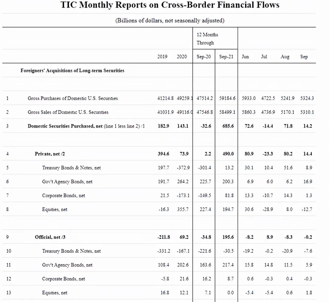 据美国财政部在12月16日最新发布的国际资本流动报告显示(美债官方数据会有两个月的延迟惯例),10月,虽然私人投资者鉴于全球经济增长和通胀的不确定性,以及在全球债券收益率较低的情况下买入了119.95亿美债,但包括全球央行在内的大机构外资却在10月卖出435亿美元的美债,这是自今年5月份以来最大规模的资金外流,其中,全球央行连续第六个月净减持美债。