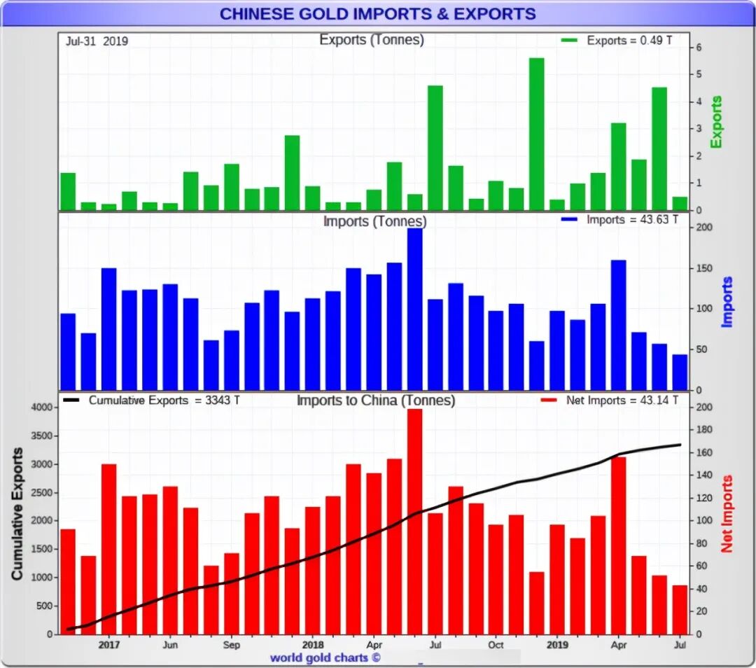 另据上海黄金交易所(SGE)数据显示,9月份,上海黄金交易所的黄金出库量大幅上升至191吨,较上月增加27%,较2019年9月增加63%,8月,上金所和上期所的黄金(期货)交易量也达4163吨,较上月增加6.5%,而从2016年12月至今的黄金交易活动总量更是达到创纪录的2.53万吨,而以上这些数据统计表明,自2021年初以来,至少有708吨黄金已经陆续运抵中国市场。