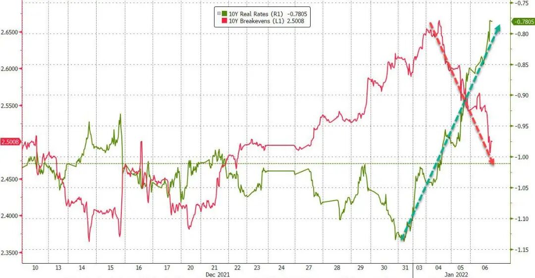 随后美财政部在2022年第一周发行的总额高达1105亿美元的2年期和5年期国债招标需求也非常疲软,弱于预期,出现滞销,这表明敏感的风险资金开始撤离美国市场,同时,公司债恢复发行也加剧市场抛压。