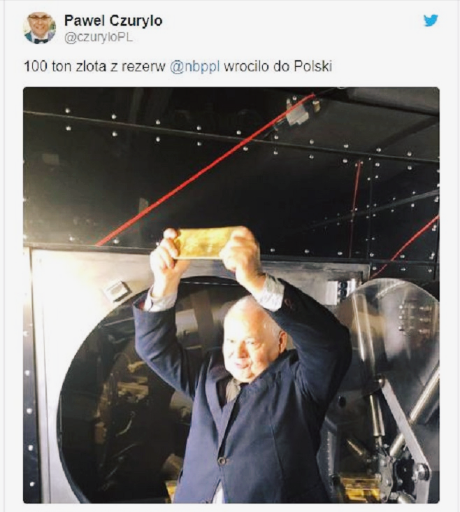 而就在上个月,爱尔兰媒体援引波兰央行官员在社交媒体上发布消息称,波兰官员在社交媒体的兴奋地表示(具体可参考下图),波兰进了一项绝密的行动,用多架深夜航班飞机从美联储和英格兰银行等海外金库中空运回了8000根金条(约100吨),这也意味着波兰成为第14个正式宣布运回黄金的国家。