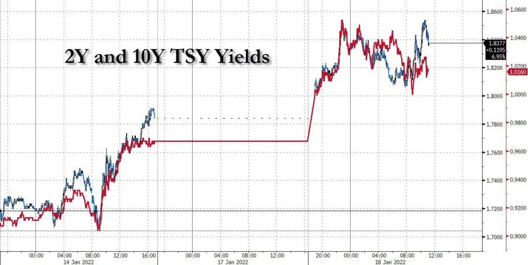 市场立即做出反应,短期美国国债收益率飙升,1月19日,美国2年期、5年期和7年期美国国债收益率升至2020年1月以来的高点。