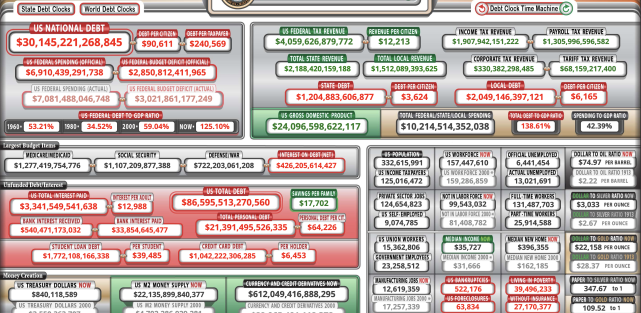 目前,在下面这个像飞机仪表盘样的美国联邦国债实时钟上显示的债务赤字总额已连跳三级超过30.1万亿美元大关,且数据还在飞速增长中(具体数据细节请参考下图),相较1989年里根发表离职讲话时更是增长了8倍还多,德意志银行表示,包括德国、日本、美国等在内的大多数发达国家有接近20万亿的主权债券和其它资产是名义上的负利率,这也意味着美联储资产负债表在负利率的过程里将失去大幅度紧缩的动力(也就是说虽然现在美联储在讨论加息,但也随时会降息),因为,他们现在唯一能做的就是放慢扩张速度而已。