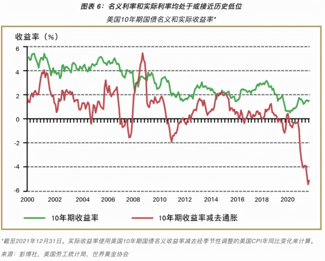 同时,作为全球资产价格之锚的十年期美债的实际收益率更是处在负值,导致吸引力下降(具体数据趋势请参考图)。