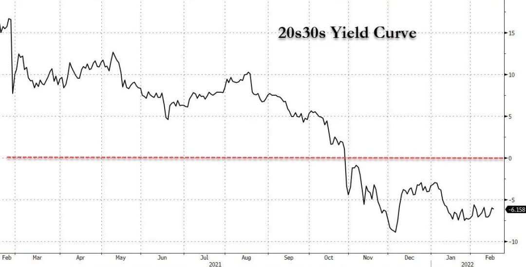 据彭博监测到的远期市场显示,美国交易员正在为20年期和30年期收益率曲线出现倒挂做准备,经验表明,美债收益率曲线倒挂通常是经济衰退的前奏,被金融市场形容为“最惊人的趋势线”之一。