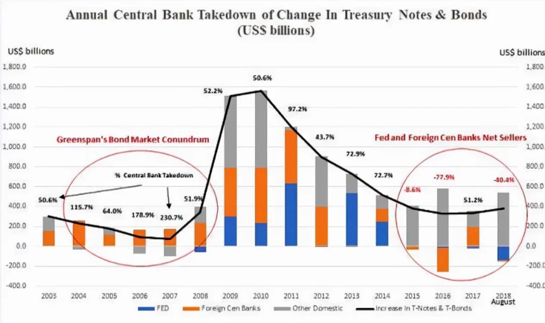 我们团队据美财政部公布的最近五年的数据统计发现,全球央行净购买的美债总量并没有和美国大放水印钞的数量成正比例,具体趋势请参考下面这份近五年以来全球央行购买美债量数据图,因为,随着美国债券供应量不断激升,持续数月的高通胀,使得美元债资产贬值,且实行极低利率政策,实际收益率更是处在负值,导致吸引力下降。