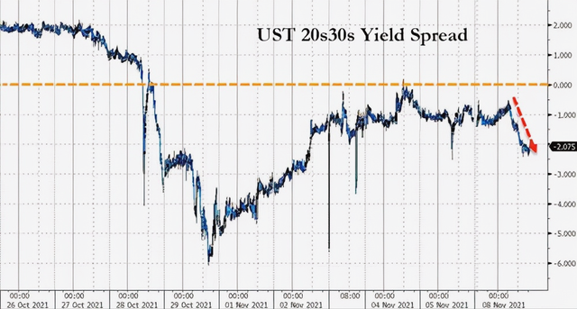 据彭博监测到的远期市场显示,自去年11月以来,交易员正在为20年期和30年期收益率曲线出现倒挂做准备,经验表明,美债收益率曲线倒挂通常是经济衰退的前奏,被金融市场形容为“最惊人的趋势线”之一。