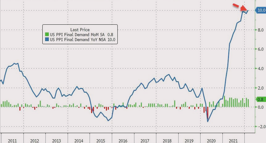 目前,在俄乌局势不确定下使得美国物价压力预期恶化后,让华尔街担心1970年代的美国滞胀幽灵将重现。新债王”冈拉克在3月10日也表示,今年美国的通胀率可能高达10%,这意味着通胀存在失控的风险,并对美国债券市场带来压力,目前,美债收益率已经触及两年半以来最高,被投资者抛售。