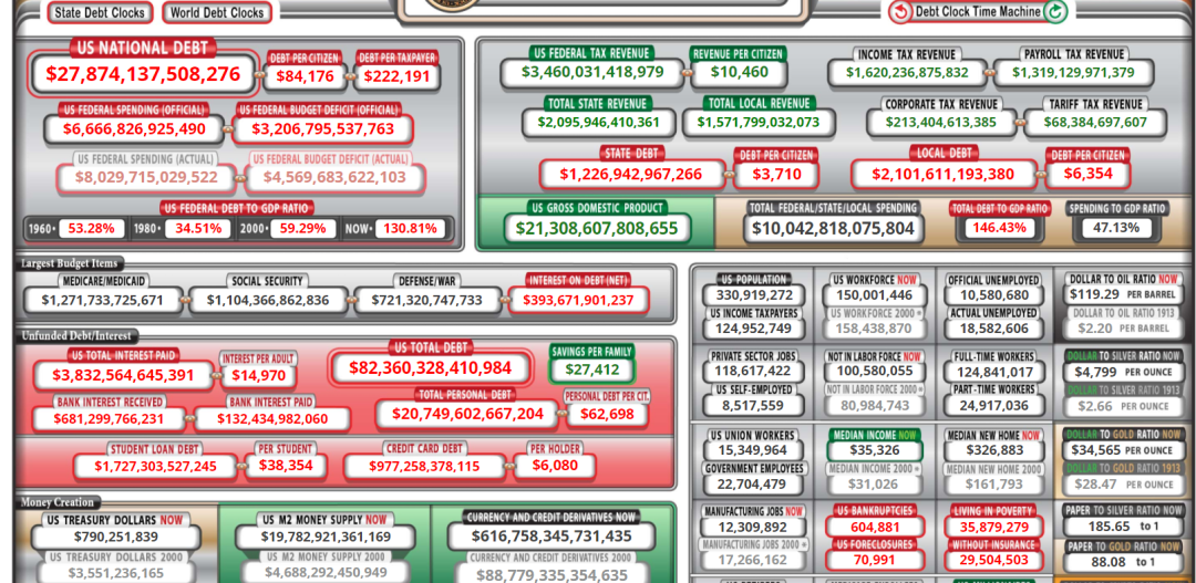 截止2月5日,美国联邦债务实时钟上显示的数据已经接近28万亿美元,且数据还在实时快速增长中,而在过去的41周内,美国财政部和美联储已向市场投放达超20万亿美元的基础货币流动性和经济刺激方案来弥补系统的脆弱性。