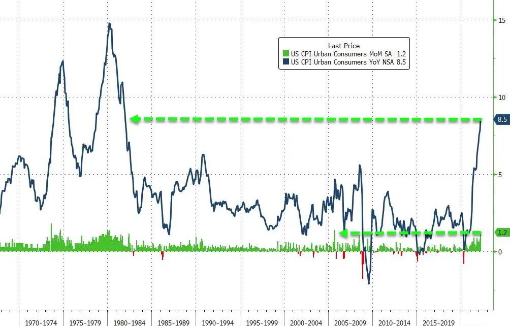美国劳工统计局4月12日最新公布数据显示,在俄乌冲突持续下受食品和能源价格影响,3月CPI年率同比大增8.50%,高于市场预期8.4%,也大幅远超前值7.9%,继续创下1981年12月以来新高,同时,排除能源和食品价格之外的3月核心CPI年率也录得6.50%,也是自1982年8月以来的最快涨幅。