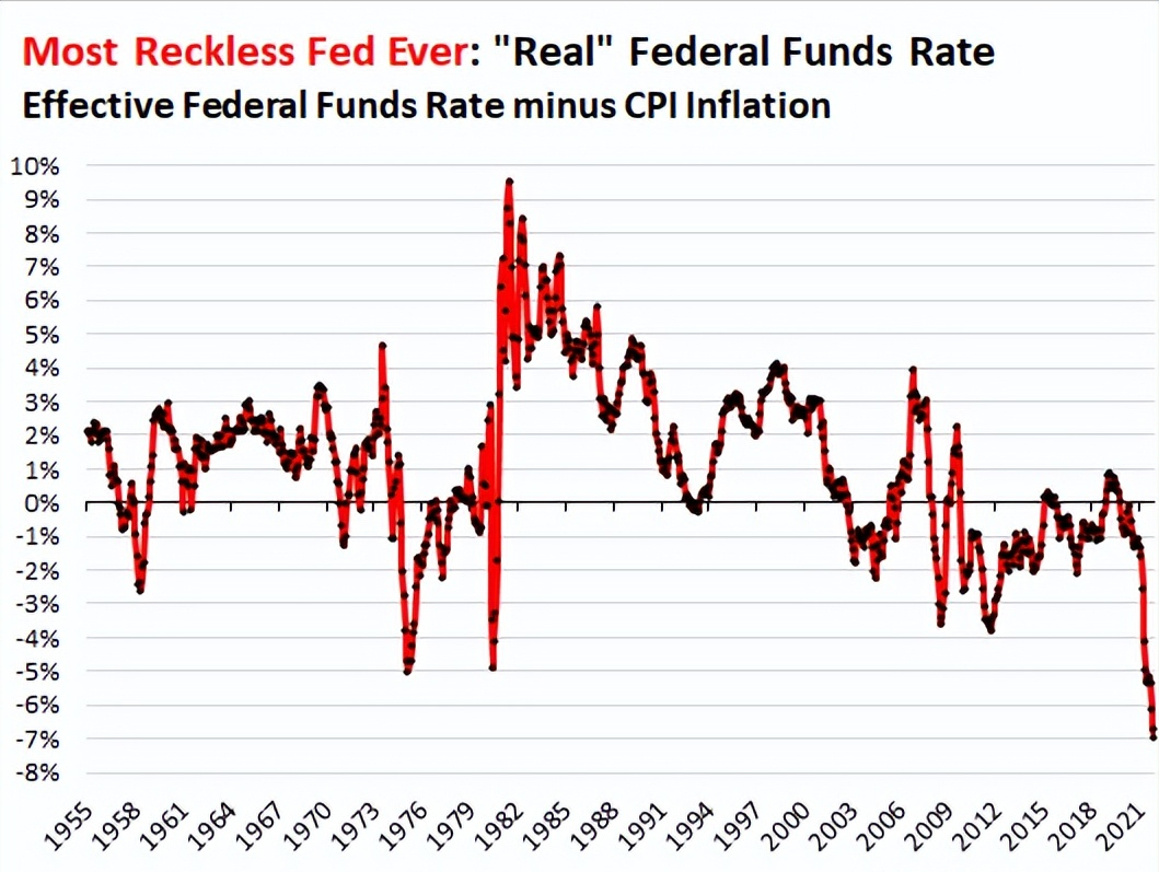 对此,据美国石英网站在4月11日援引的一些经济学家的最新观点分析认为,虽然,美联储已经开始加息,但仍无法使得美债实际收益率转化成为正数据值(目前十年期美债收益率扣除通胀后为负5.71),随着美债实际收益率长期处在更深的负值区间,这也意味着处于40年以来的高位通胀已经对冲了美国巨量债务的利息成本,美国债市存在隐性违约的可能性。