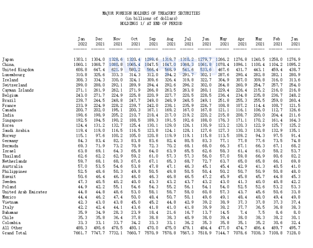 所以,随着美国债务和通胀同时激升,当那些聪明的全球央行需要解决美国债务风险时,货币市场中的美元角色被重置将会发生,而以上这些也是中国和日本从去年12月开始要连续两个月大幅减持美债的部分原因。