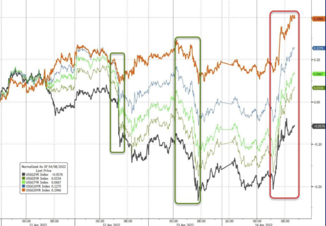 这使得华尔街坚信一旦俄乌局势如果出现缓和,那么,10年期和2年期美债收益率势将攀升至3%,高盛在4月15日发表的报告援引的数据显示,2021年初,两年期美债收益率低至0.15%,目前涨至近2.43%。