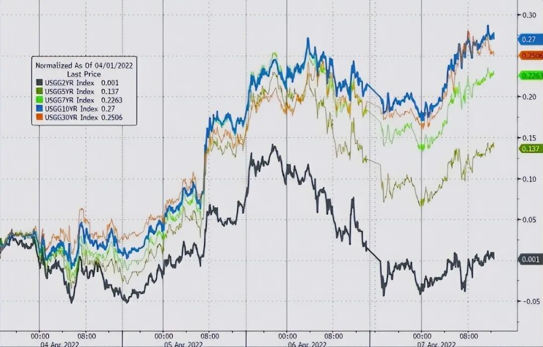 各期限美债收益率上升