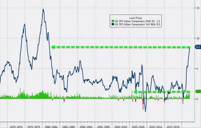 美国4月15日公布的3月进口物价指数意外大幅升至2.6%(远超前值并超越所有经济学家的预期),比2月1.4%的数值更是涨超近一倍,4月14日公布的3月生产者物价指数(PPI)再创逾12年以来的最大环比升幅,另外,3月CPI年率也是同比大增8.50%,大幅远超前值7.9%,创下1981年12月以来新高。