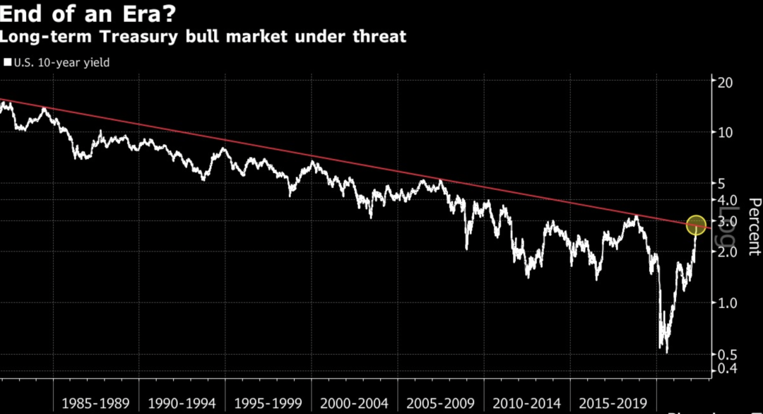 4月17日,美国债券市场又开始炒作美联储鹰派政策。十年期美债收益率更是一度涨至2.83%,创下三年多以来的新高,并且是持续时间最长的一轮涨势。30年期国债收益率一度上涨6.5个基点至2.43%,为2010年5月以来最高水平,因债券收益率与价格成反比关系,美债收益率上升代表净抛售量大于购买量。这使得交易员们坚信一旦俄乌局势缓和,10年期美债收益率料将攀升至3%,此市场预期也使得美债被进一步抛售。事实上,这个趋势早有迹象。