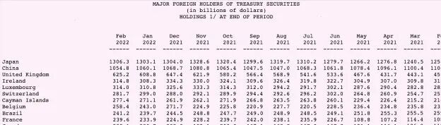 这也使得包括中国、日本、英国、法国、加拿大等在内的美债基石级别的大型机构可能会大幅减持美债,该美媒认为,虽然在目前美债价格下跌的背景下,抛售美债存在损失收益风险,但若俄乌冲突持续使得美国通胀风险高企的背景下,也存在清零美债可能。