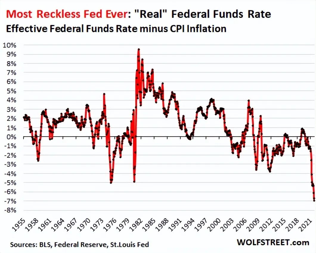 更重要的是,连续11个月超过5%以上通胀数据已经使得2年期美债实际收益率在近两年多时间以来一直处在负值深渊,经通胀8.5%调整后更变为负5.71%。